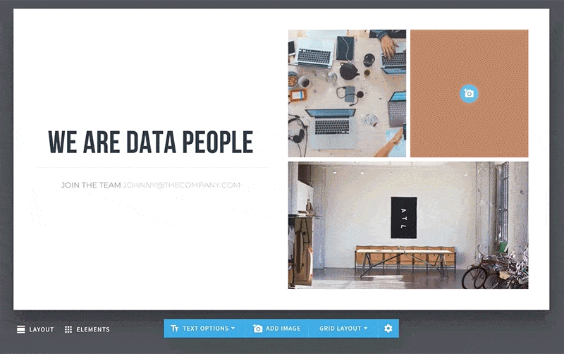 Don’t just settle for a standard design. Try moving the design elements on your page into different configurations. Explore elements and easily drag text boxes and call-outs around on your About Us template.