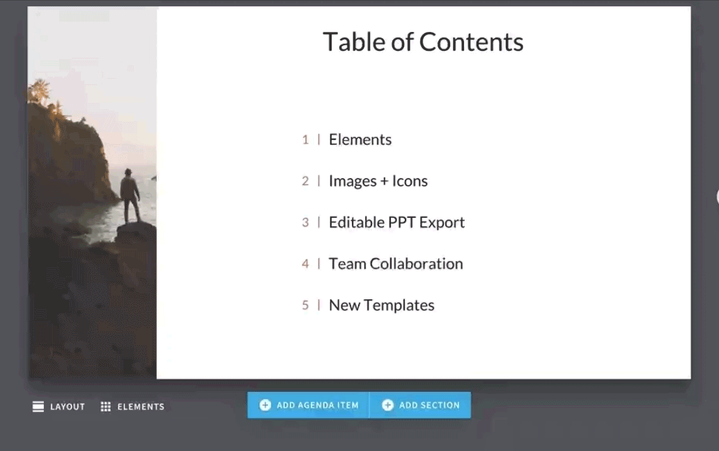 In your business every detail is important. That’s why using a professionally designed Beautiful.ai agenda template for your next meeting is a must. Our agenda template even allows you to link each agenda item to the corresponding information page(s) in your presentation. Toggle back and forth without having to fumble around for the correct slide.