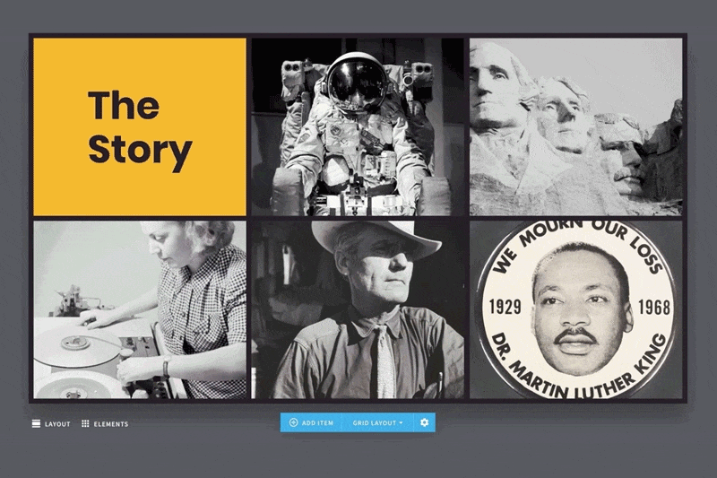 First, you’ll want to start with the default photo grid template and learn the basic ins and outs. Easy enough, right? Choose the template, then select the photo(s) from our free image library. If you want to add a personal or branded asset, you can also upload or drag and drop from your own files, use images from previous presentations, or add icons and logos in place of an image.