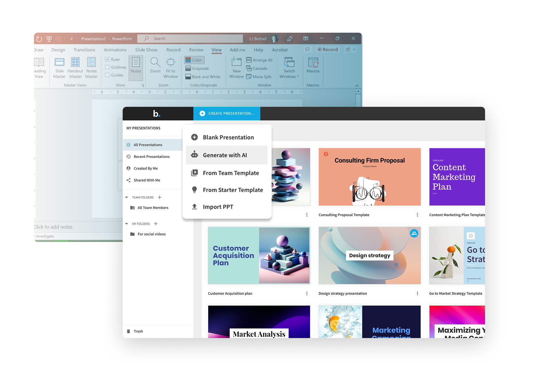 Take it from our users, who say it’s ten times faster to create a presentation with Beautiful.ai than PowerPoint. And unlike PowerPoint, our Basic presentation features are free.
