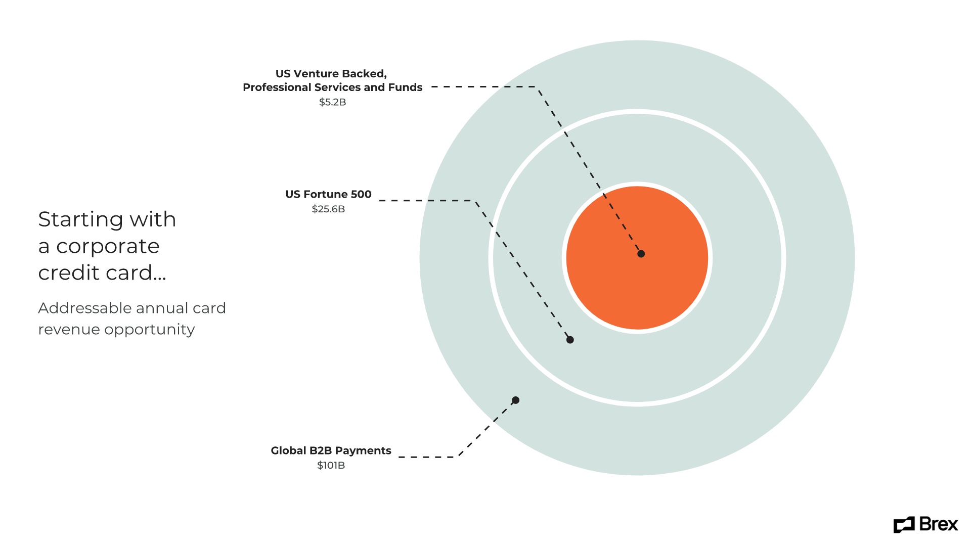 Every pitch deck needs a powerful title slide, and we recreated the title slide from the original Brex pitch deck using Beautiful.ai’s Title Smart Slide template, as well as an image from our free library full of stock photos, icons and logos.