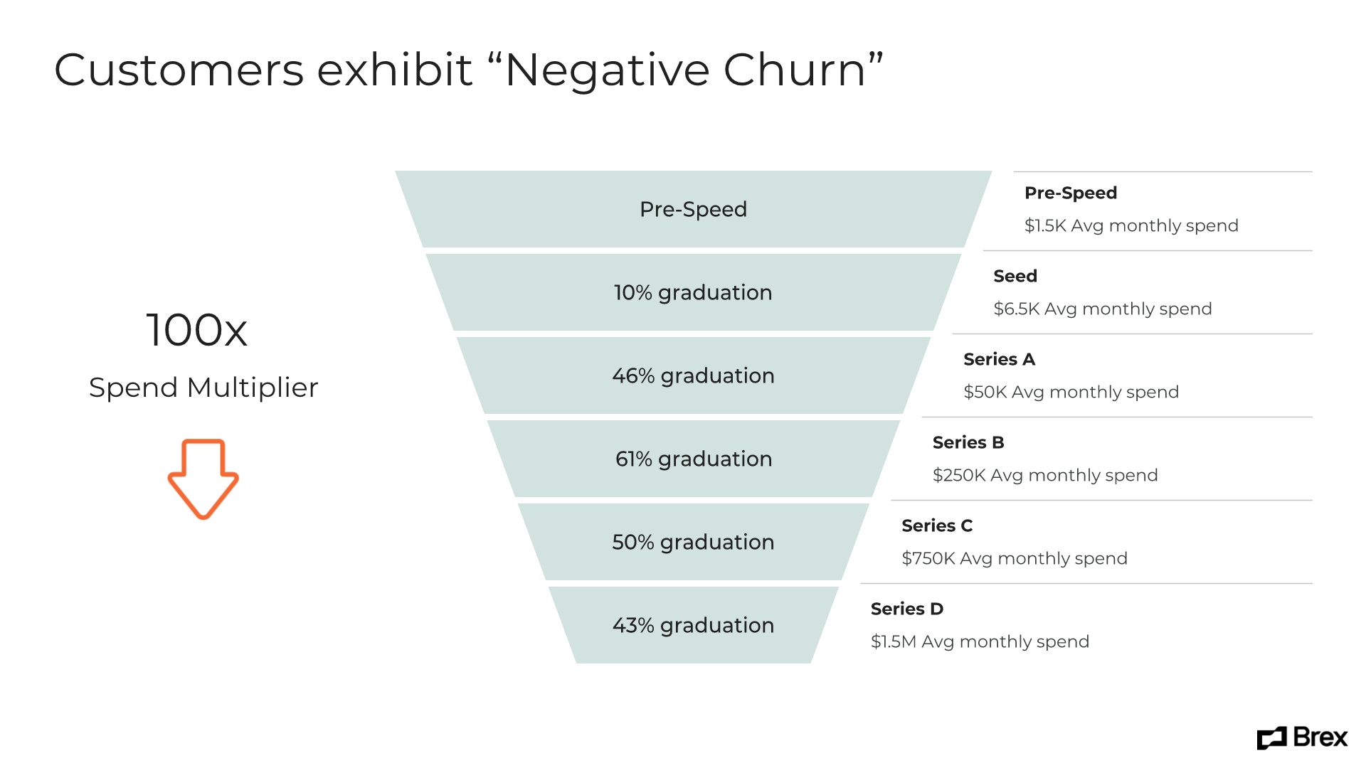 The next few slides in the Brex original pitch deck showcased the brand’s various benefits, including better data, better controls, receipt capture and integration. Great info, but rather boring presentation. We jazzed up these pivotal slides using a variety of Smart Slide templates, including our Headline template, Arrow Bars infographic, Product Screenshot slide and our Logo Grid template. We even animated the slides to keep them interesting.