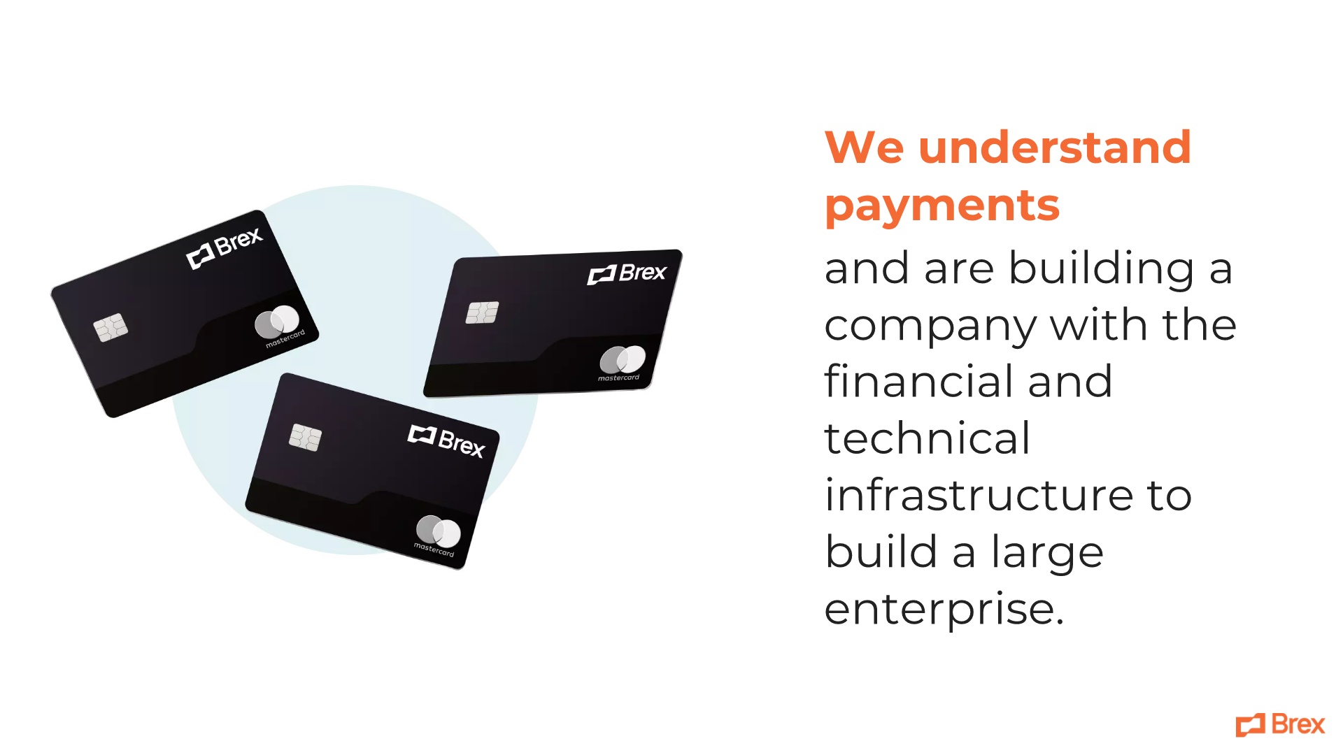 The original Brex pitch deck featured a powerful closing statement, including the brand’s value proposition. We were able to recreate this slide with ease using Beautiful.ai’s Headline Smart Slide template. We added an engaging image of Brex cards from our library, and we made sure we animated the slide to hold attention to the end.