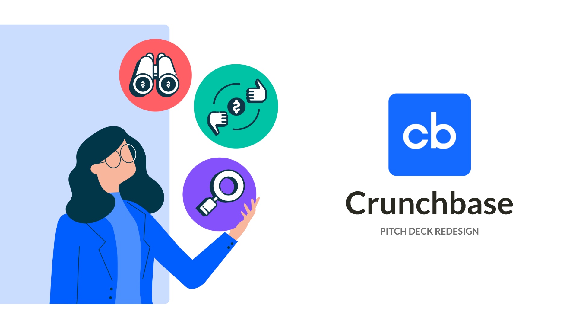 Every pitch deck needs a proper title slide, and we redesigned the original Crunchbase title slide with a colorful illustration. Instead of the simple title on the original, we also included the company’s name and logo on our Headline Smart Slide template.