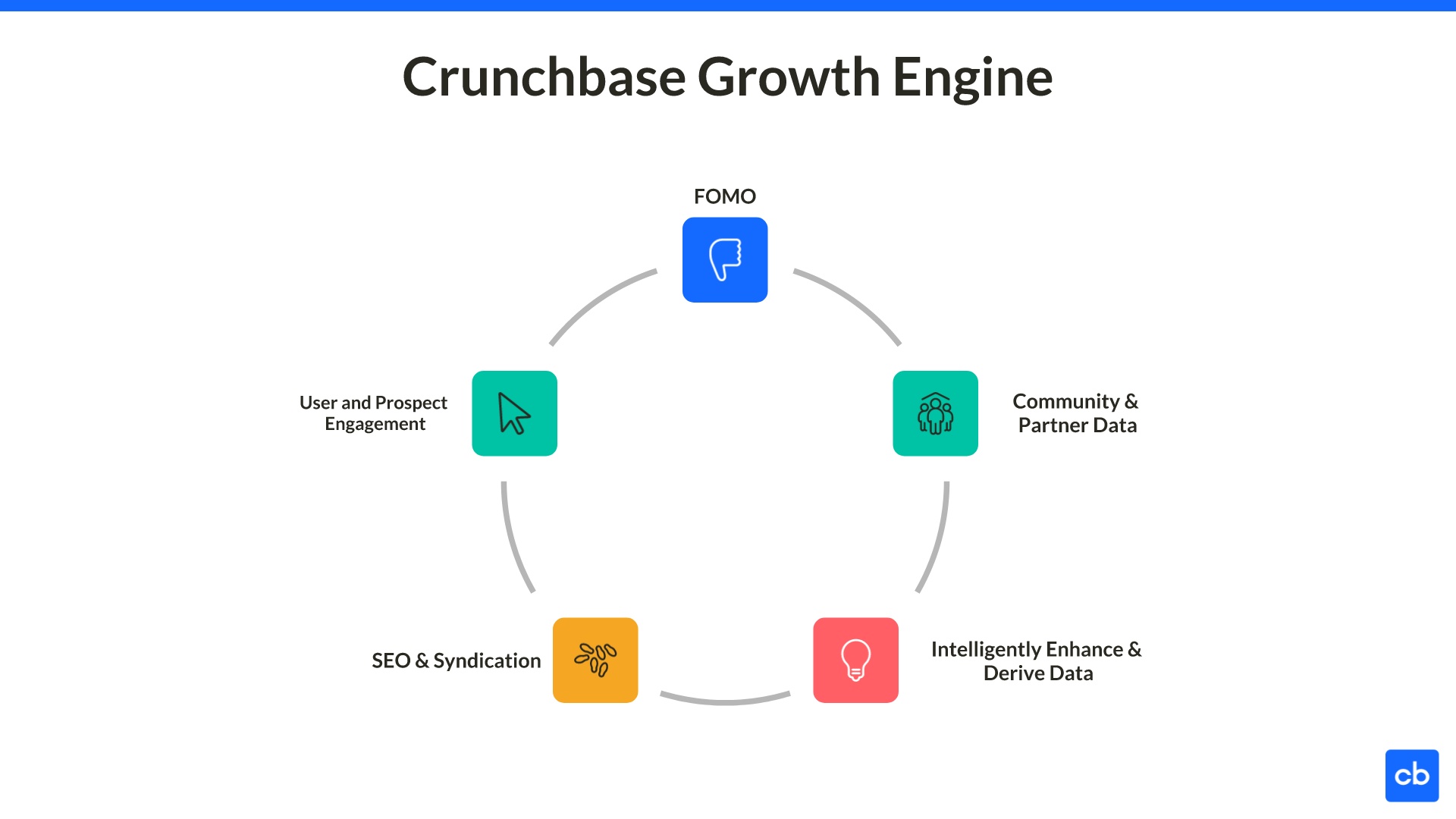 Impressed by the infographic on Crunchbase’s next slide? We recreated the Crunchbase growth engine with ease by using our Cycle Smart Slide template. We selected appropriate icons from Beautiful.ai’s vast image library, then we labeled them and watched as artificial intelligence transformed the basic information into an animated infographic. Let’s not even imagine the headache of crafting a similar design using a traditional software program like PowerPoint!