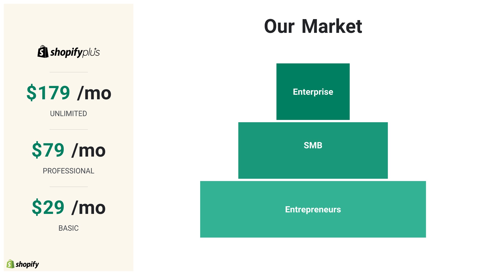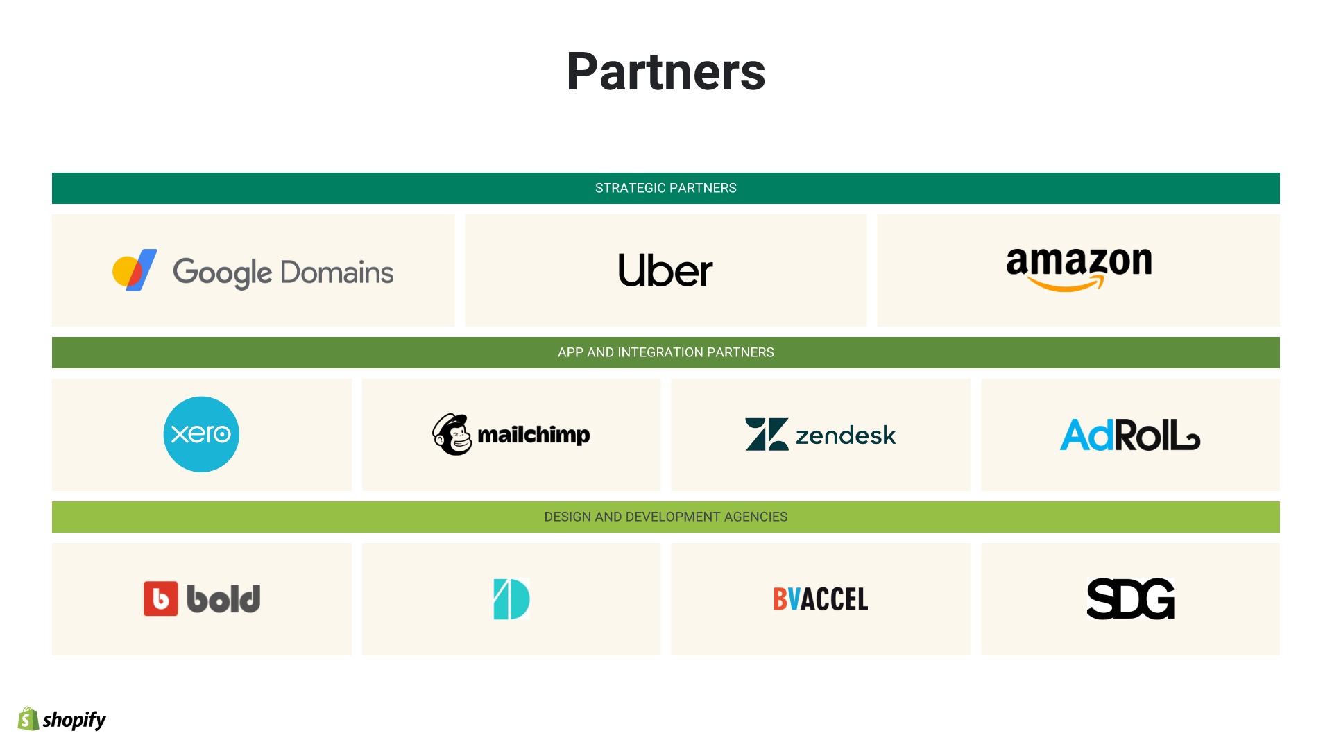 Data tells a story, and numbers can play a convincing role in a pitch deck. The Shopify team included data illustrating its user base on its title slide, but we felt this important information deserved a slide of its own. The slide was easy to create using our Photo Grid Smart Slide template, and simply inserting the numbers into each field.