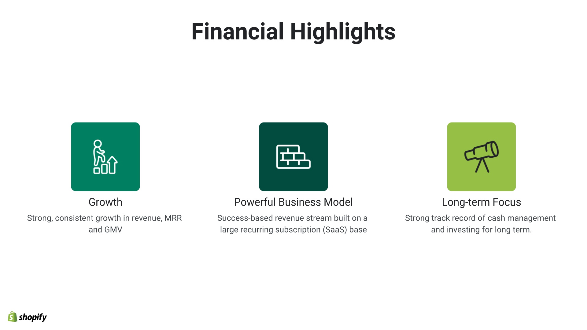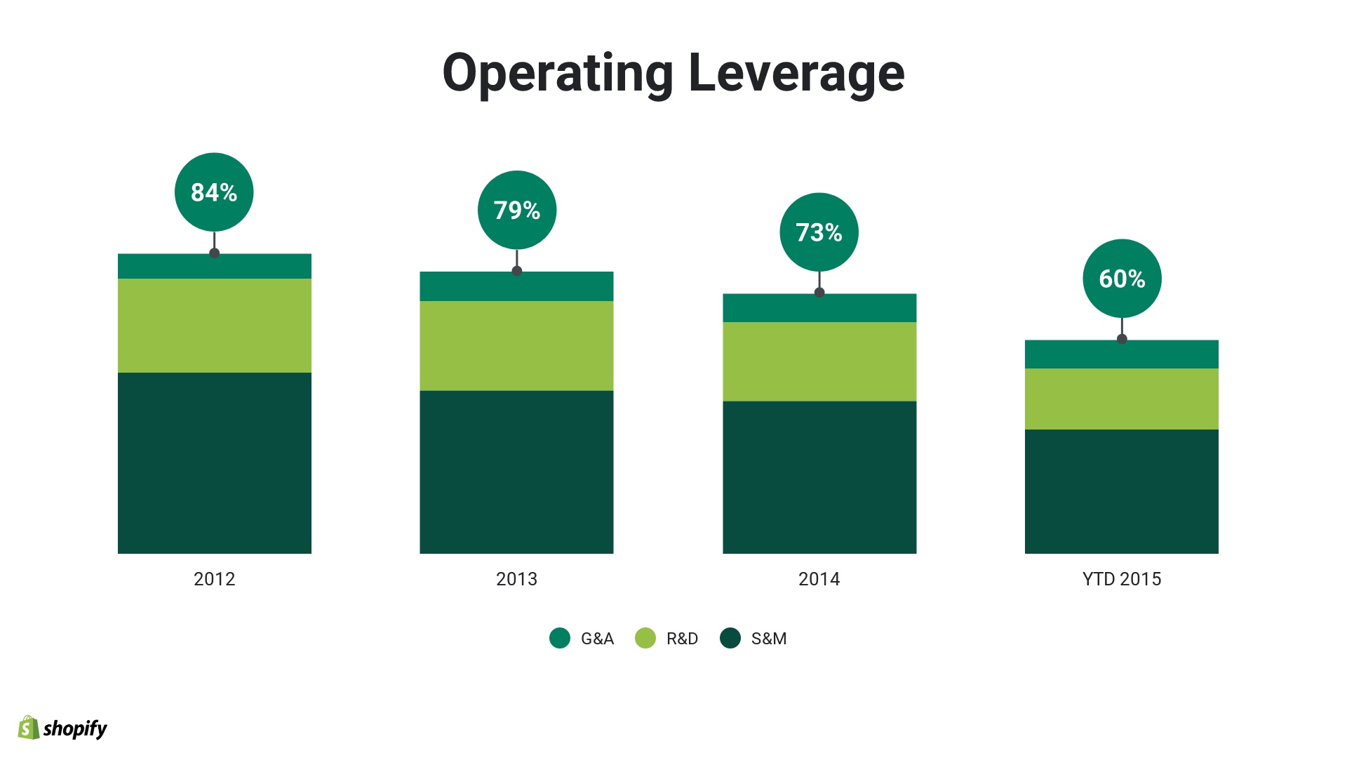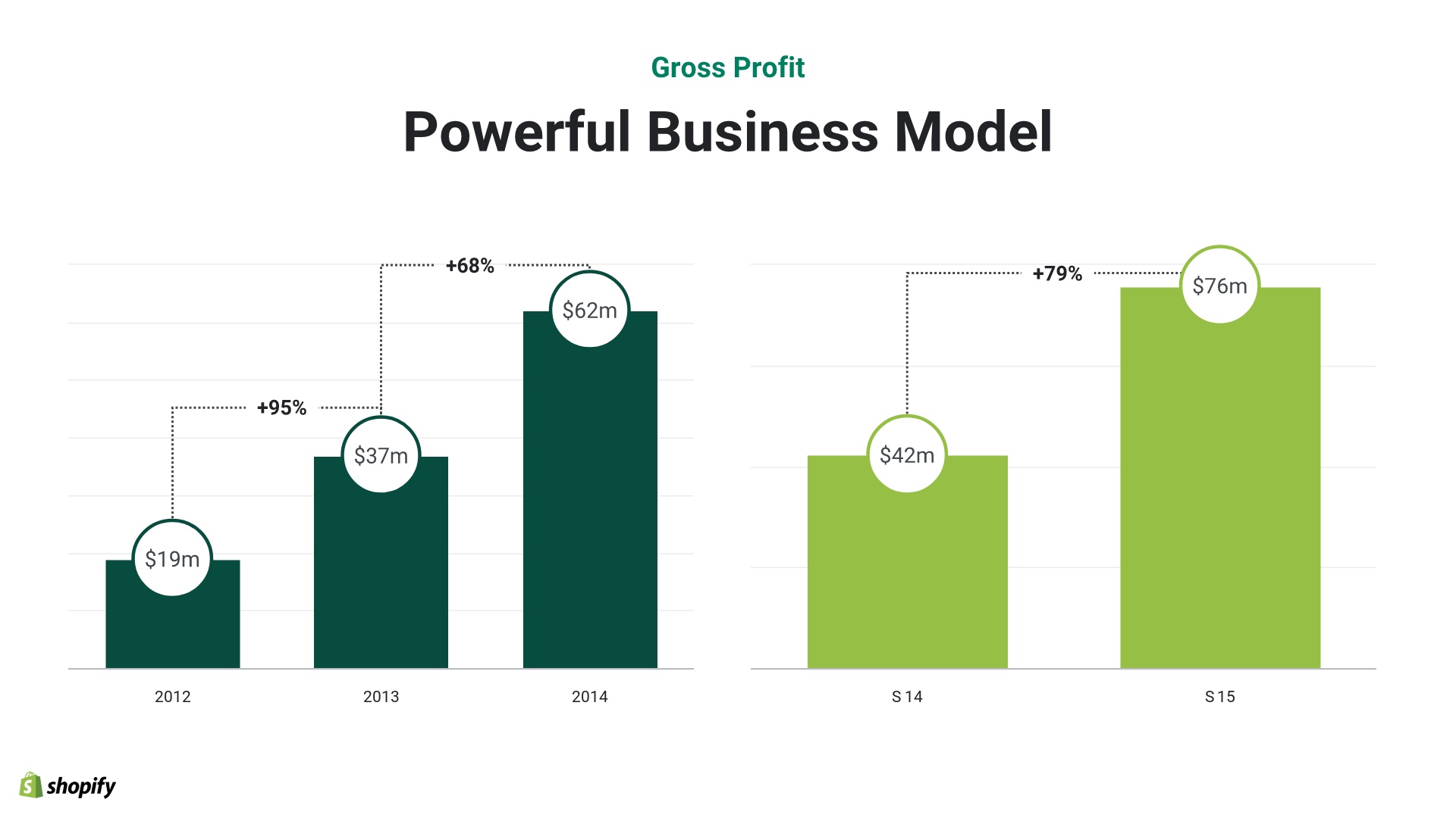 No pitch deck is complete without plenty of financial data. Shopify opened this sequence with an introductory slide, simply stating the upcoming topic. We recreated this slide with our Headline Smart Slide template and placed the text against a bold green background in accordance with Shopify’s brand style. To showcase Shopify’s financial highlights, we again chose our Icons with Text template, complete with illustrations from our free icon library.