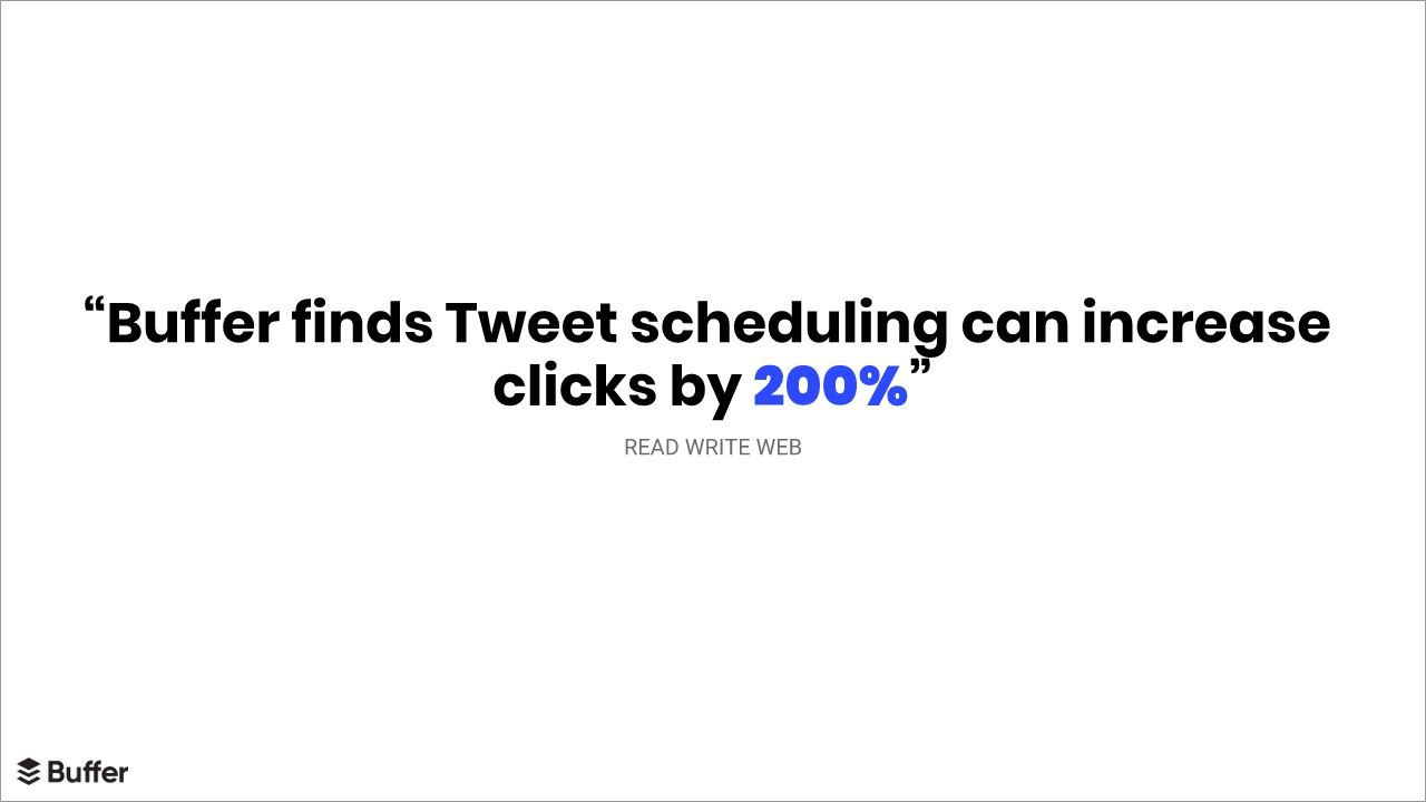 We liked the cleanliness of Buffer’s original slide, but updated it with a more modern font. Since we already set the Design Theme for our slides using the color palette icon, all the fonts and page design elements were automatically adjusted based on principles of good design.