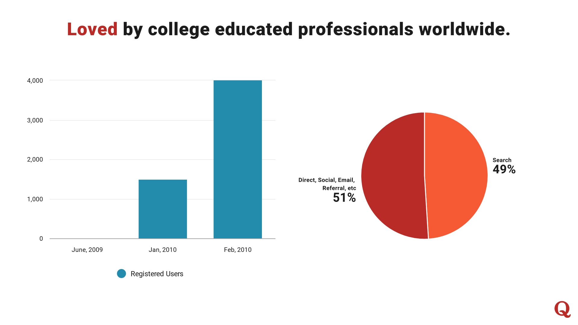 Of course, before any of that could happen, Quora’s founders had to score that first investment to launch the brand— and to do that, they needed a stellar pitch deck. The slide deck Quora used for that first pitch was plenty informative, and it included engaging infographics to help tell the company’s story in data.