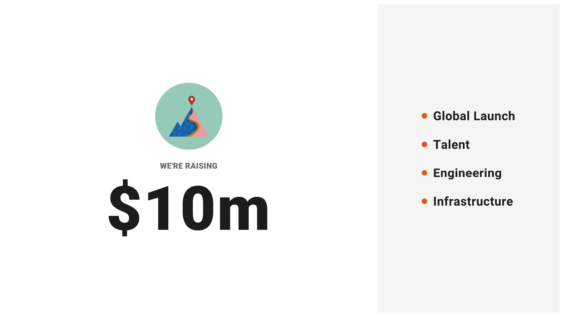 To redesign the original Quora slide detailing some basic financial information, we created a simple slide, taking advantage of ample white space to make the single illustrated figure— $10 million— stand out.
