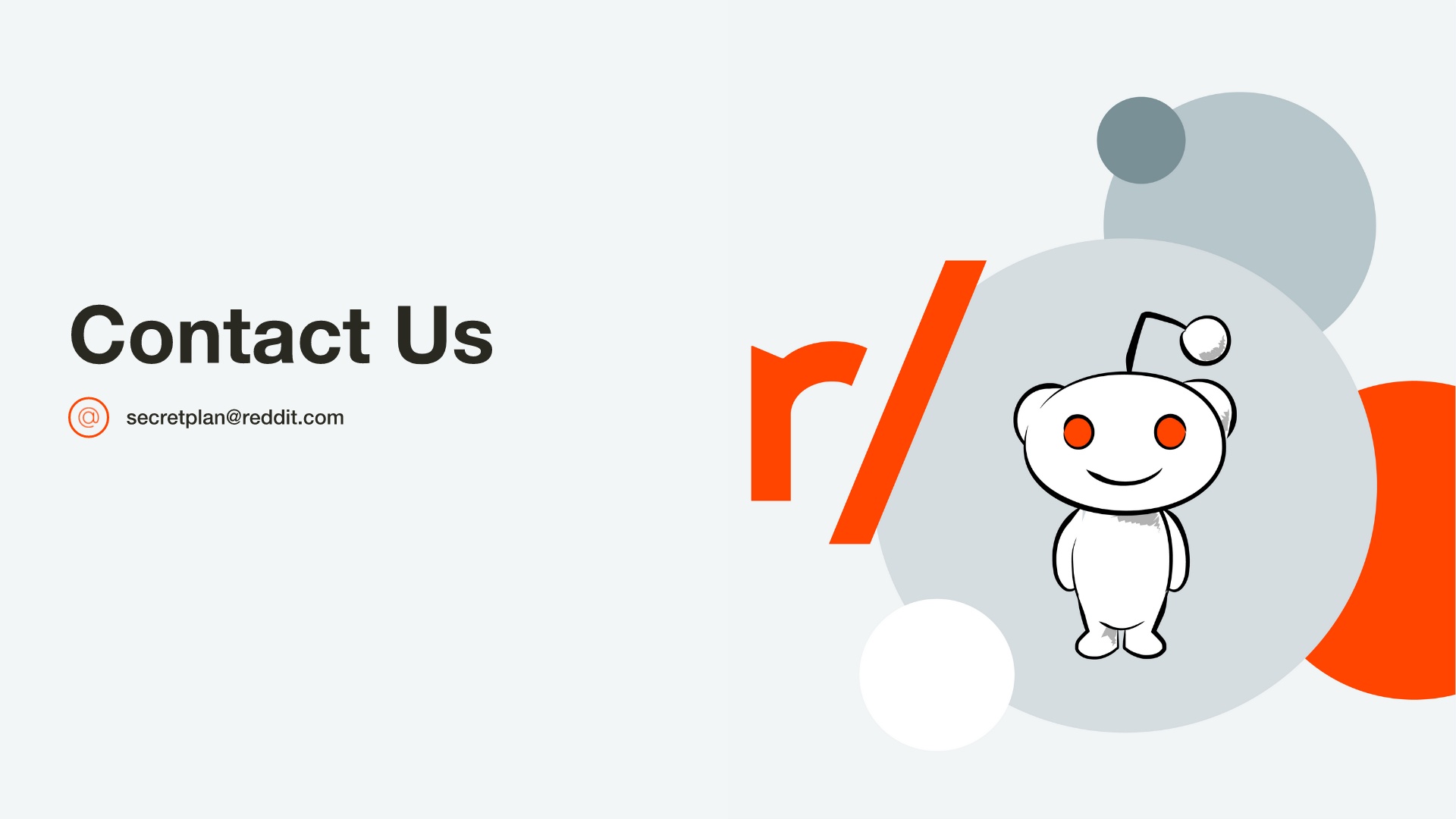 Any good pitch is going to leave potential investors with the company’s contact details, and we had just the slide template to do the job. We recreated Reddit’s final slide using our Contact Us Smart Slide template. The Beautiful.ai template provides fields to input information like name, address, phone number and email address, then our AI perfectly positions the information using the principles of great design.