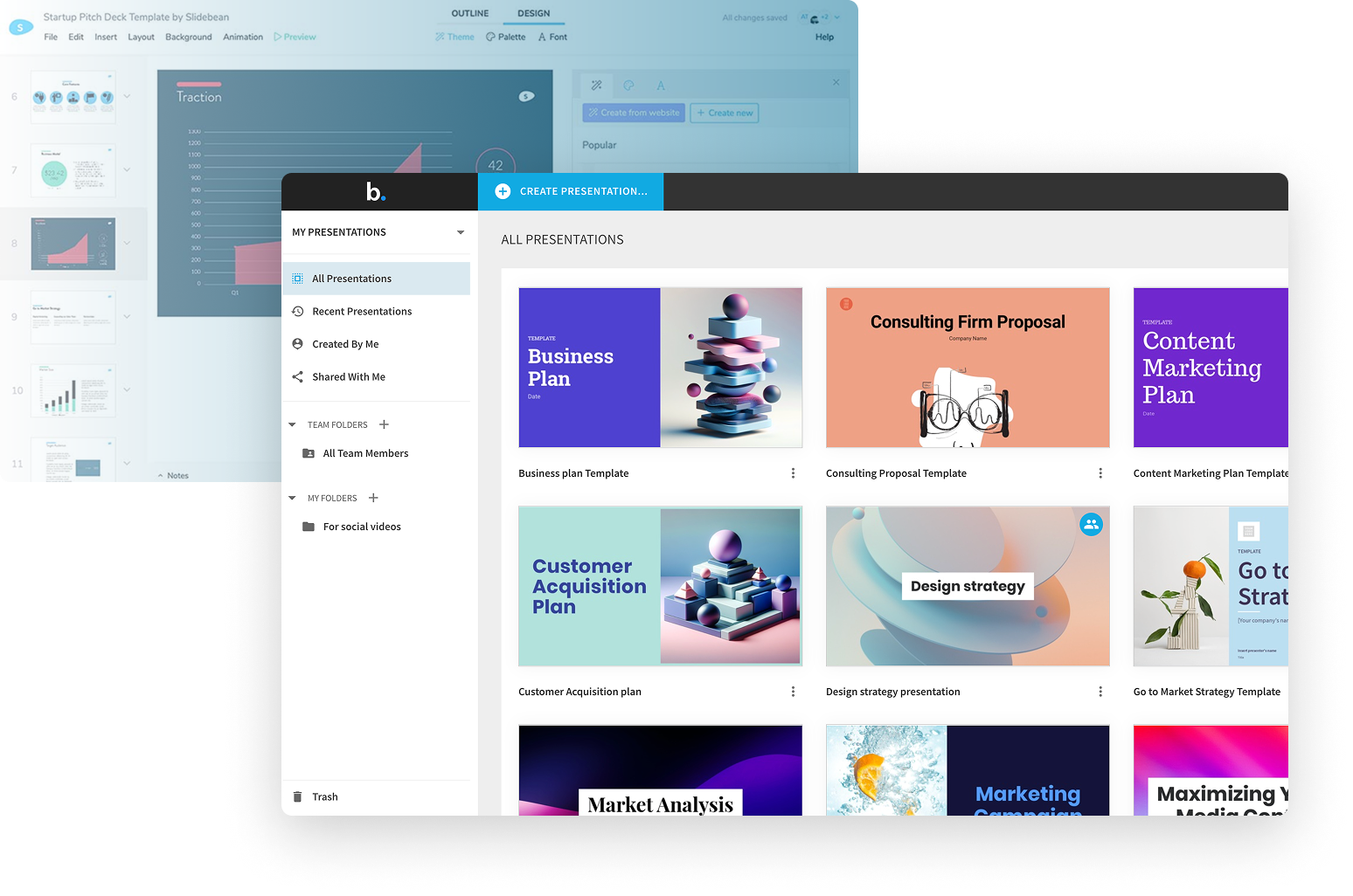Make the switch to Beautiful.ai, the best Slidebean alternative out there. Sign up with Beautiful.ai and start designing your next presentation in minutes.
