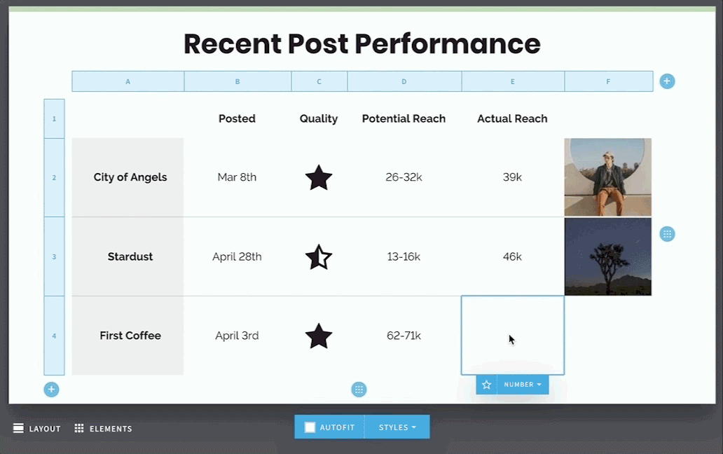 Change table style easily and visually emphasize rows, columns or cells to highlight important content.