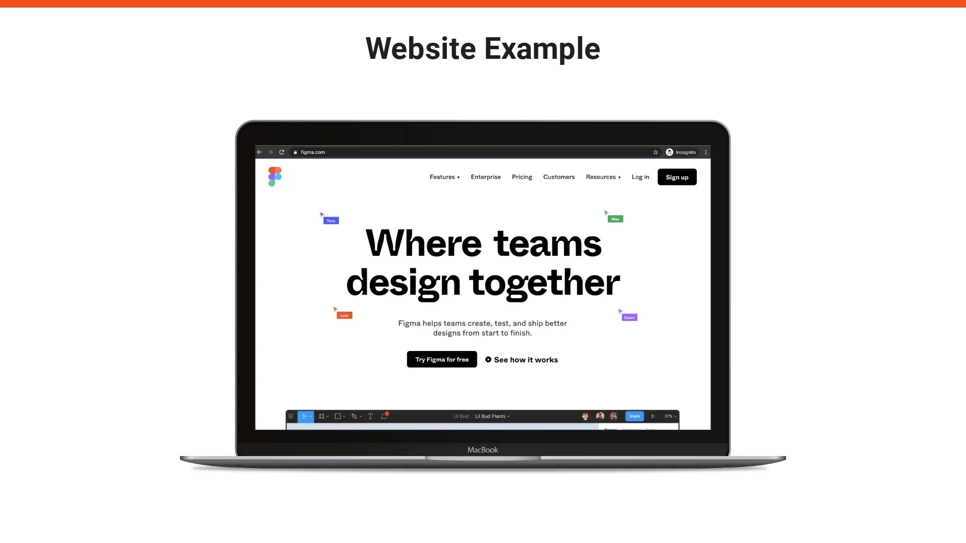 Including a colors slide ensures that the team is aligned on brand-approved colors moving forward to use in sales collateral, marketing materials, and designs. We used an Icons with Text slide to include a display of Figma’s new colors in each icon bubble. Your team can use this slide as a resource to find color HEX codes down the line.