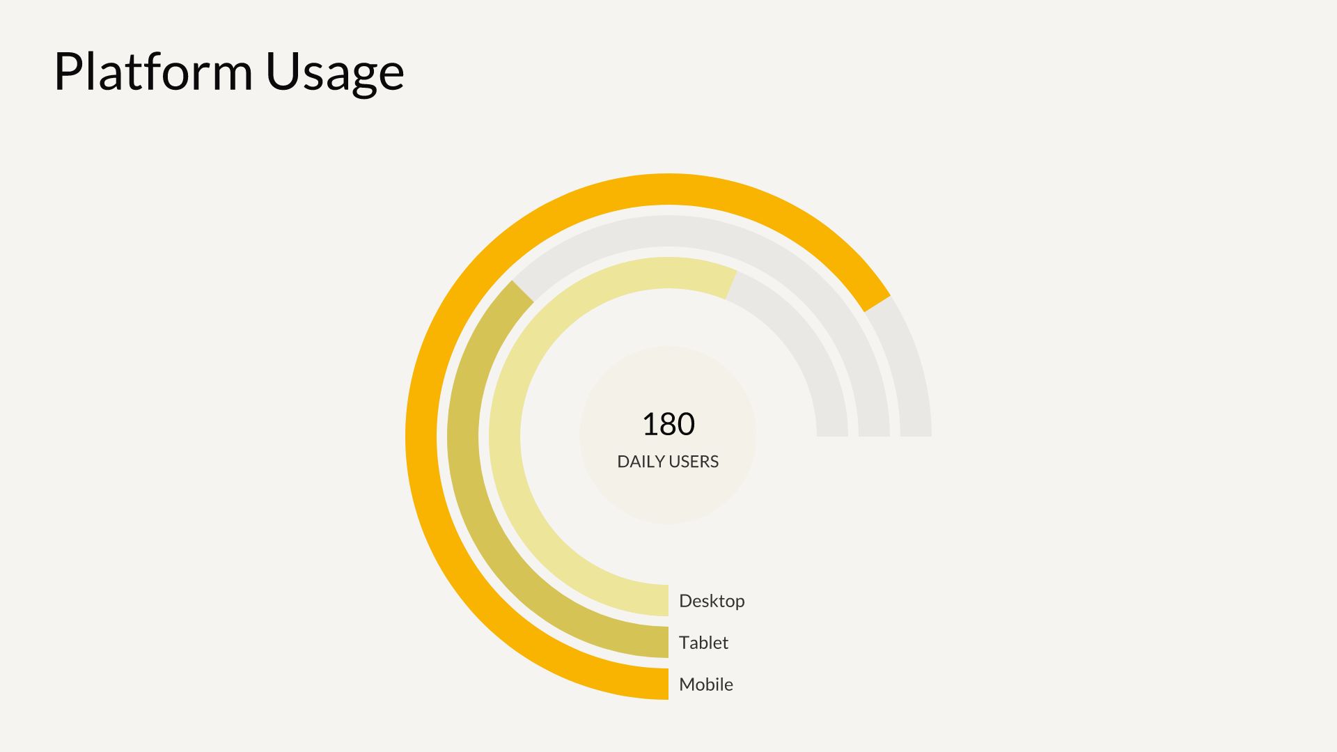 Looking for a different way to display percentages, or an interesting twist on a regular bar chart? Try a radial bar chart. You might use one radial bar chart with multiple bars to compare and contrast different data sets. In this kind of bar chart, each bar is plotted along a circular grid instead of an XY-axis.