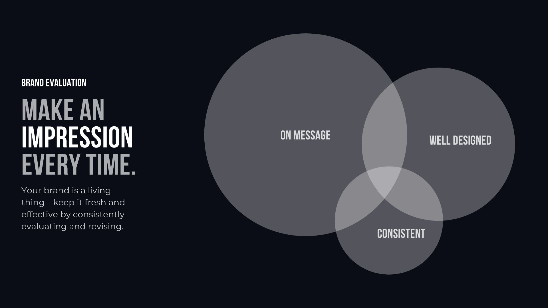 Venn diagrams make it easy for the viewer to understand how multiple things are alike and different at the same time. It can also show a specific relationship between sets of data. For example, if you want to explain that your ideal client for your arts and crafts business is 25 to 34 years old, creative, and lives in the United States, you might use a Venn diagram template in your presentation to show that easily.