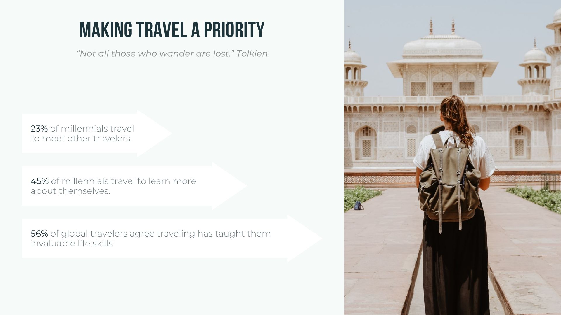 When you need a minimalist yet slightly dressed up list, try arrow bars to add some impact to your presentation. Arrow bars can be used to list steps in a process, share statistics, or explain relationships between items. Rather than plain black dots in a bullet list, arrow bars imply change, movement, and direction. They can make the data in your list more compelling and dynamic.